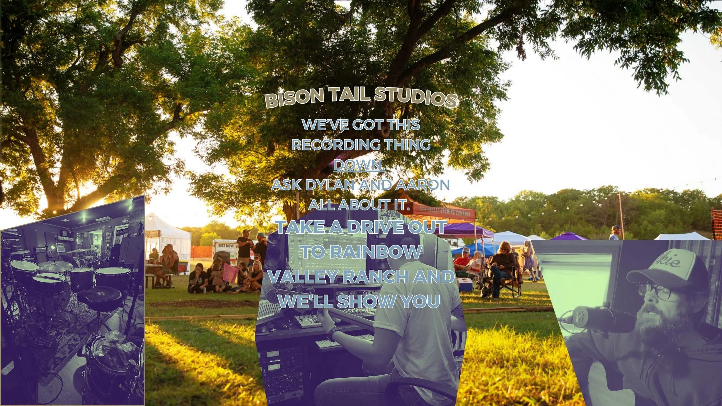 Bison Tail Studios is a studio founded by lifelong friends Aaron Rogers and Dylan Swindell. The environment and love that went into creating the studio is reflected onto all clients, big and small. While attending ACM@UCO, both realized the need for a studio environment where artists could create in peace. Away from the loud city streets, terrible parking, and grumpy people. A place without intimidation or crazy pricing. Located on a beautiful 160 acres in Wellston, OK, Bison Tail is the solution to these problems. The time and love that went into creating the studio is reflected onto each and every musician who calls it home.